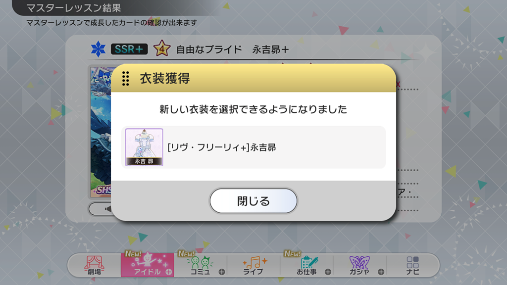 SSR 일러스트도 잘 나왔네요. 처음에는 P 아이돌 / SSR 카드 모두 같은 모습을 그렸는데, 최근에는 동일한 연출에 구애받지 않고, 서로 다르게 표현하고 있습니다.