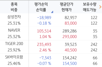 3+1 종목을 골랐습니다. 단순 코스피 추종 'TIGER 200을 이길 수 있을 것인가'가 관전 포인트가 되겠네요.