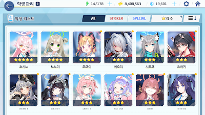 별 개수로 정렬해본 스샷. 5성 호시노의 뒤를 이어 애정으로 올린 노노미와 모모이가 4성입니다.